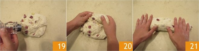 Sprinkle generously with black pepper (preferably freshly ground) 19 and knead until fully absorbed 20. Now shape the dough to form a loaf 21.