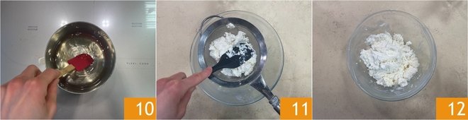 Mix and set aside 10. Prepare the cream: sift the well-drained ricotta 11 into a bowl 12.