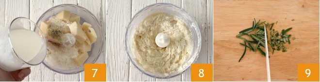 Also add the cream 7 and blend to obtain a smooth mixture 8. Chop the rosemary needles with a knife 9.