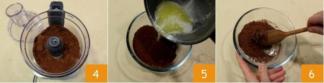 grind them finely 4 then pour them into a small bowl and add the melted butter 5. Mix the mixture with a wooden spoon 6: this will be the base of the cheesecake.