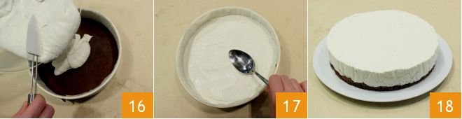 Pour the cream over the biscuit base now set 16, distribute it evenly with the back of a spoon 17, and place the cheesecake in the refrigerator covered with aluminum foil for at least 2 hours. Once set, your cheesecake will be ready 18 to be decorated.
