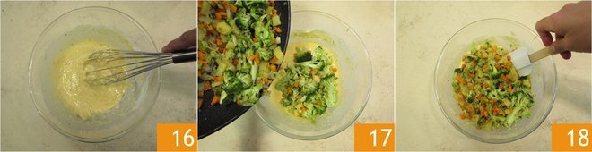 Mix well to obtain a smooth mixture 16. Add the now cooled vegetables to the mixture 17 and mix everything 18.