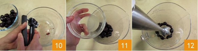 Pit the cherries 10 and blend them with the lemon juice (11-12).