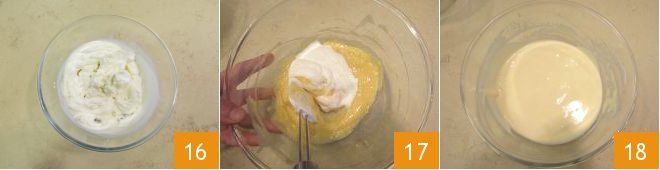 Whip the cream with electric beaters 16 and add it to the cream 17 stirring with the spatula 18.