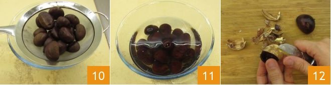 Drain them 10 and cool them in a bowl of cold water 11. Once cooled, peel them 12 and set aside.