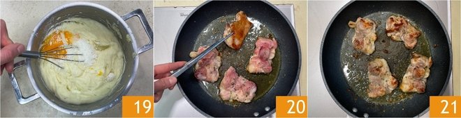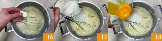 At this point, add the butter 16, the grated Parmigiano Reggiano DOP 17, and the egg yolks 18.