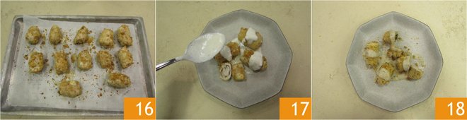 Once the chicken bombs with cheese and pepper are cooked 16, remove them from the oven and serve them hot with the Pecorino sauce 17 18.