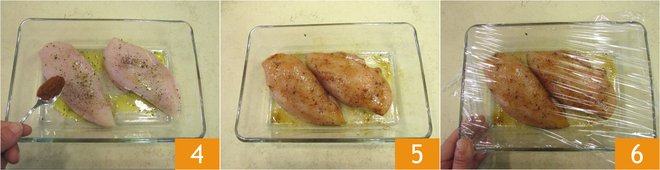 Also season with sweet paprika 4 and massage the chicken well 5. Cover with plastic wrap and let marinate in the fridge while you continue with the recipe 6.