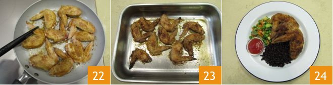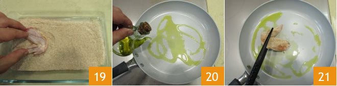 Pass them in the breadcrumb mixture, making sure to coat them well 19. Drizzle a large pan with oil, heat it, then place the wings 20: sear them on each side for a couple of minutes 21.
