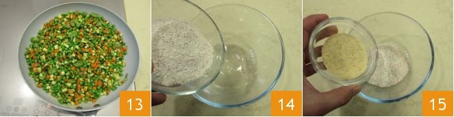 Once ready, turn off the heat and keep them warm 13. Next, you can prepare the coating for the chicken wings: in a bowl, pour the whole wheat flour 14 then add the breadcrumbs 15,