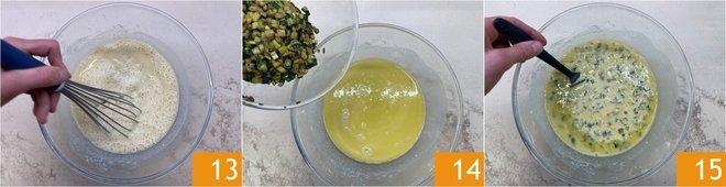 Mix well to combine 13, then fold in the now-cold zucchini 14 15.