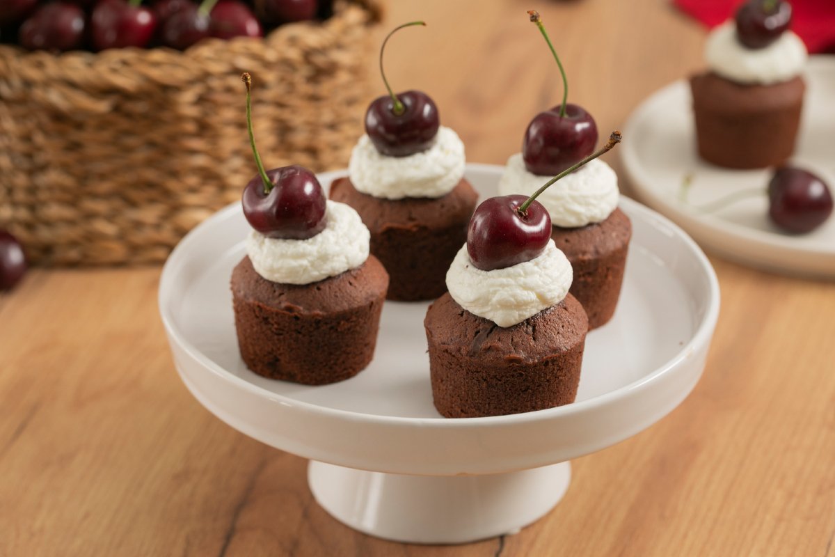 Chocolate and cherries are the distinctive ingredients of the typical Black Forest cake, and they are so good together that we wanted to offer the same combination in another format: the chocolate and cherry cupcakes!