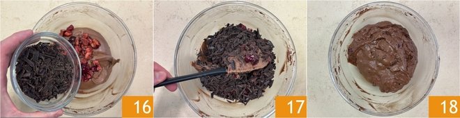 Also add the chopped chocolate 16, then gently mix with a spatula 17 to incorporate them evenly 18.