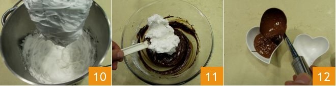 then operate until you obtain a firm and thick foam 10. Add the whipped egg whites to the chocolate a little at a time, folding them in with upward movements to keep them intact 11. At this point, fill one or more bowls of your choice with the cream 12 and let them set in the refrigerator for at least 3 hours.