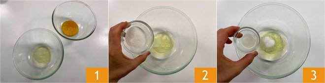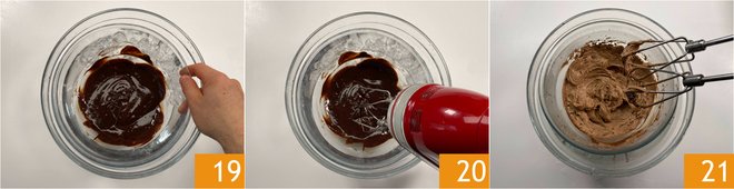 Place the bowl inside another larger one filled with ice and water 19. Work with electric whisks 20 until the mixture becomes frothy and changes color 21.