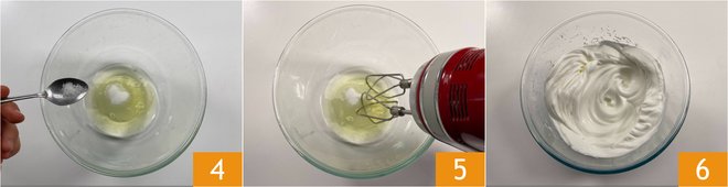 Add the salt 4 and beat 5 until you obtain a frothy mixture 6. Place it in the refrigerator.