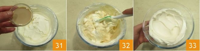 At this point, add the Baileys 31 and mix again with the spatula 32 to blend it into the cream 33.