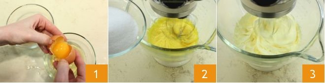 To make the chocolate dome cakes, start by preparing the sponge cake domes known as "casse": separate the egg whites from the yolks and place them in two separate bowls 1, beat the yolks with half of the sugar 2 until a light and fluffy cream is obtained 3.