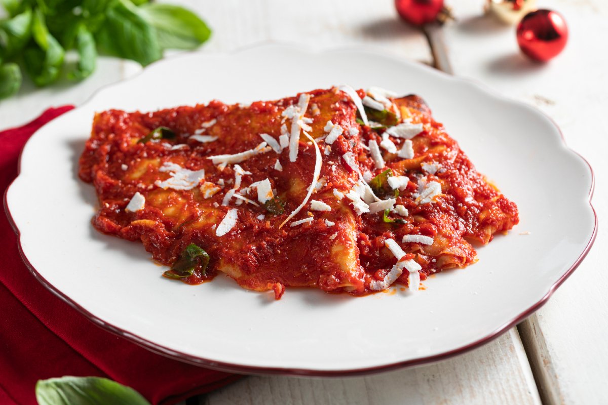 When it comes to Christmas crespelle, Northern Italy really knows how to nail this festive dish. It’s the holiday season staple. Families gather around to enjoy these tender and moist crepes. What's inside? Rich tomato sauce, melting mozzarella, and savory cooked ham. And the salted ricotta—man, it's good—sprinkled both inside and out, gives each bite a creamy kick. Plus, there's no béchamel here—which is great. Makes it feel lighter but still super comforting, you know? Perfect for a chilly winter evening.