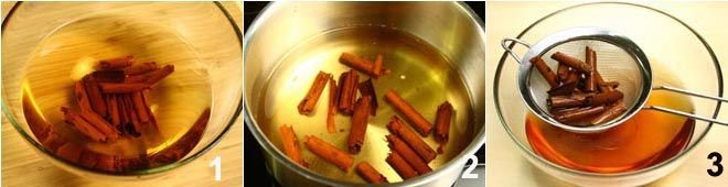 The first step to prepare cinnamon jelly is to let the cinnamon sticks steep overnight in half a liter (about 2 cups) of water 1, so they release all their aroma into the liquid. The next day, boil them in the water 2 and let them sit for the entire day, then strain the cinnamon and set the water aside.