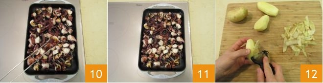 turning halfway through 10. Once grilled, set the octopus aside 11. Meanwhile, prepare the potato puree. After peeling them 12