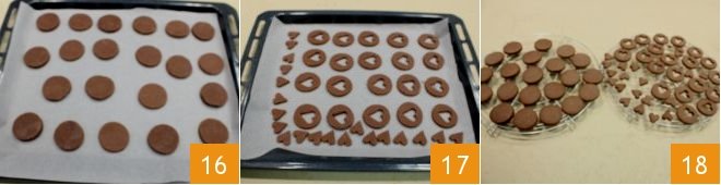 Place the shapes on a baking sheet lined with parchment paper (16-17) and bake them in a preheated static oven at 356°F for about 10 minutes (if using a fan oven, 320°F for about 5 minutes). Once baked, remove them from the oven and let them cool completely on a wire rack 18.
