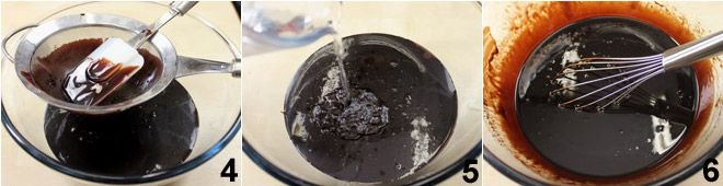 Let the mixture simmer for about 30 minutes. Allow the cream to cool, and when it is warm, pass it through a sieve to remove any lumps 4. Finally, add the alcohol 5 and mix with a whisk to blend the cream well 6.