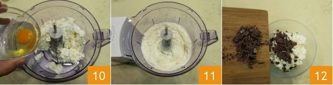 Add 1 egg 10 and blend until you get a thick and homogeneous mixture 11. Transfer the cream to a bowl and add the finely chopped chocolate 12;