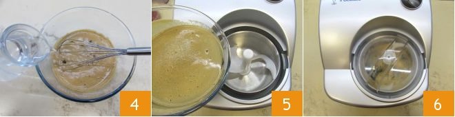 While continuing to whisk, also add the water at room temperature 4. Pour the mixture into the ice cream maker 5 and turn it on 6: it will take about 30 minutes to achieve the ideal consistency. If you don't have an ice cream maker, you can proceed as follows: pour the mixture into a wide container and place it in the freezer for at least an hour. Then take it out, stir it with a fork and repeat the operation until you get the desired consistency every half hour or so!