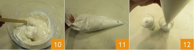 and mix again always from the bottom to the top 10. Once you have obtained a homogeneous mixture, transfer it into a pastry bag 11 and use it to fill your glasses;