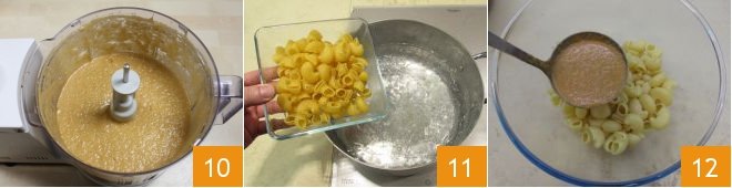 Blend again for a few seconds until a smooth and homogeneous mixture is obtained 10. Then, let the gazpacho rest for a few hours. Meanwhile, cook the pipe rigate in a pot with boiling salted water to taste 11. Then drain them al dente and cool the pasta under cold running water. After that, drain it well and transfer it into a large bowl, pour part of the gazpacho to dress the pasta 12.