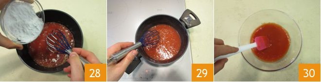 and, while stirring with the whisk, also pour in the cornstarch 28. Mix well to avoid lumps and then place the saucepan on the flame. Cook at medium-high temperature until you have obtained a sauce like custard 29. Transfer to a bowl and let cool completely, stirring occasionally to prevent a skin from forming on the surface 30.