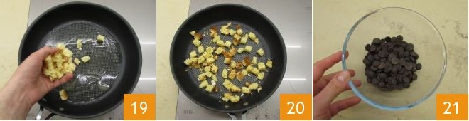 and sauté them in a pan with a pat of butter (19-20). Set aside, and just before removing the semifreddos from the freezer, melt the chocolate in the microwave or a bain-marie 21