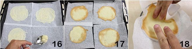 Add the sugar to the butter 13 and mix with a whisk to combine the ingredients; you should obtain a smooth mixture without lumps. Continuing to mix, incorporate the egg white 14 and sifted flour 15: you should obtain a smooth mixture without lumps.