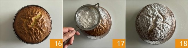 The cream cake is ready, take it out of the oven and let it cool down 16. Once cool, transfer it to a plate and serve it with a dusting of powdered sugar 17 18.