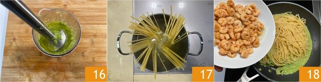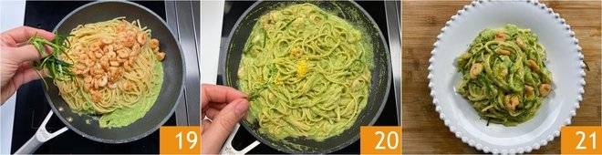 Blend again until you obtain a smooth cream 16 and transfer it back to the pan. Meanwhile, cook the linguine and drain them al dente; transferring them directly into the pan.