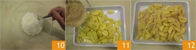 Mix well 10. Remove any paper from the potatoes and add the breading 11, mix to coat them entirely 12.