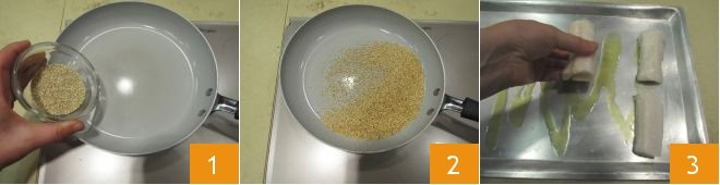 pepper and salt them 4 and finally pour the previously toasted quinoa over each hake fillet 5. Bake in a preheated static oven at 392°F for 20 minutes 6.