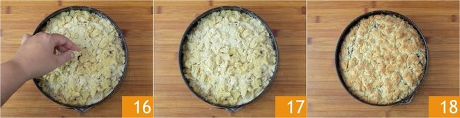Cover everything with the remaining dough 16 reaching the outer edge 17. Bake in a static oven at 350°F for 45 minutes, until the crumble is golden brown 18. Let it cool completely and remove it from the pan. The ricotta and jam crumble is ready to be enjoyed!