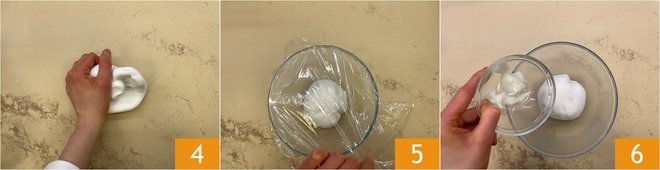 Transfer the dough to a work surface and continue kneading until it becomes smooth and elastic; this step requires a lot of energy because the dough is quite tough 4. Form a ball, place it in the bowl, and cover with plastic wrap 5. Let it rest for 5 minutes, then incorporate the lard, which will give the dough more elasticity 6.