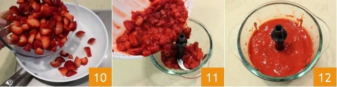 Meanwhile, prepare the cream: wash and cut the strawberries into pieces, place them in a pan 10 over very low heat and let them soften until they are mushy, then blend them in a mixer 11 until you get a sauce 12 and let it cool.
