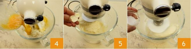 Then also add the whole eggs and the yolk little by little 4, grate the nutmeg, and when the eggs have been absorbed, replace the paddle with the hook attachment. Add a pinch of pepper for flavor and the room temperature butter in pieces, waiting for each piece to fully incorporate before proceeding 5. Finally, add the salt to the dough 6 and continue working it for at least 15 minutes.