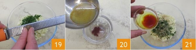 Adjust the salt and pepper and let it cook for 3-4 minutes. Turn off the heat and transfer the vegetables to a tall-sided bowl, blending with an immersion blender until a creamy and homogeneous mixture is obtained 16. Set the mixture aside. Now take another bowl and add the bread crumbs, chop it and add the crushed garlic 17, the finely chopped parsley 18