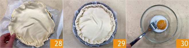 Seal the edges by twisting the pastry onto itself 28 29. In a small bowl, mix the yolk with the milk 30.