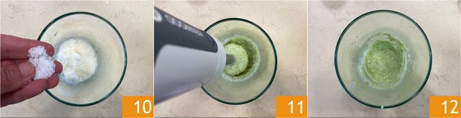 Adjust with salt 10 and pepper, then blend 11 with an immersion blender until you get a smooth and homogeneous cream 12.