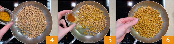 Season with turmeric 4, paprika 5 and cumin 6.