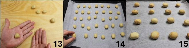 Shape the pieces with your hands to form a round shape 13 and continue until the dough is used up. Place the obtained balls on a baking tray lined with parchment paper 14 and bake them at 356°F for 15 minutes: they should be just lightly golden on the surface but not too colored 15. Remove the cookies from the oven and let them cool: now you just need to serve your Beans of the Dead to your guests, even those you can't see!