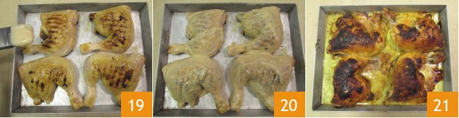 At this point, transfer the chicken thighs to a baking tray and brush them with the marinade mixture 19. Once evenly coated 20, bake in a static oven at 428°F (220°C) for 30-35 minutes 21. The time may vary depending on your oven's power.