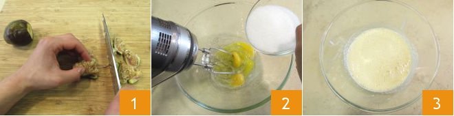 To prepare the fig and walnut loaf cake, first melt the butter in a saucepan. Wash the figs and remove the ends, then coarsely chop them without removing the skin 1. Pour the eggs into a large bowl and beat them with electric whisks while gradually adding the sugar 2 until you obtain a frothy and homogeneous mixture 3.