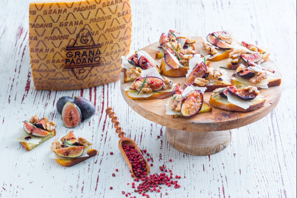 The sweetness of figs pairs perfectly with the savory flavor of cheeses, enhancing their sugary note: after highly recommending the combination with pecorino and gorgonzola, today we present figs and Grana Padano crostini! A simple appetizer with well-defined flavors that create a harmonious balance: to the classic combination of figs with walnuts, we have added the sweet-and-sour touch of balsamic vinegar and the spicy hint of pink peppercorns for a crostini for true connoisseurs. Have we piqued your interest? Try the figs and Grana Padano crostini and let us know if you liked them!
